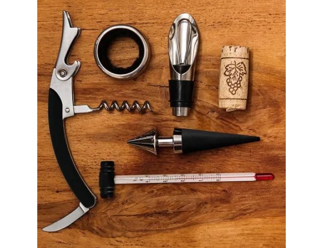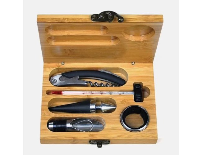 Acessórios Para Vinho Com Estojo Em Bambu - 6 Pçs