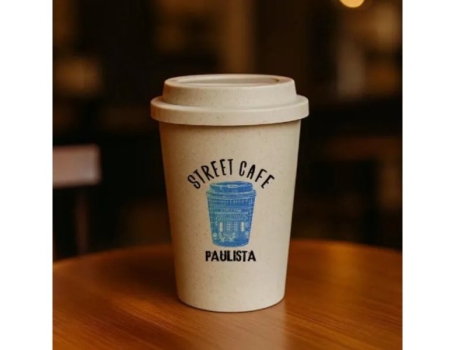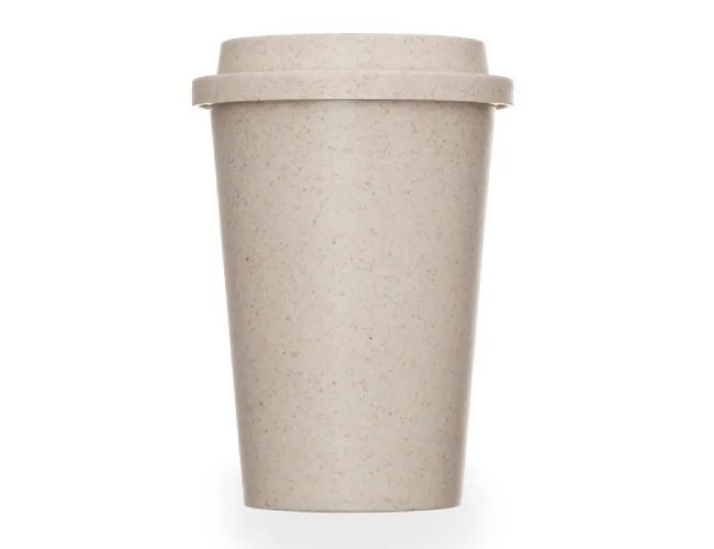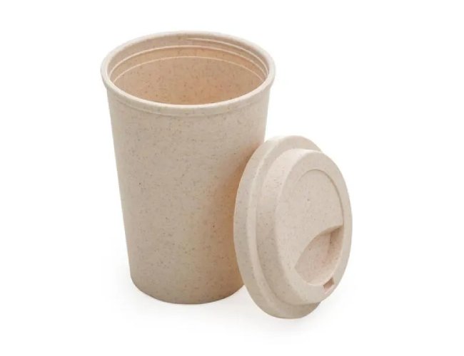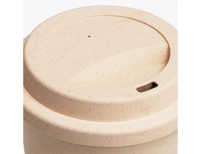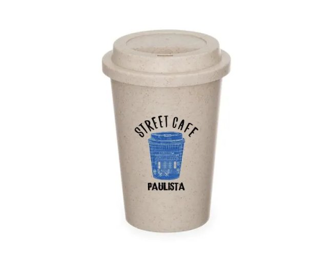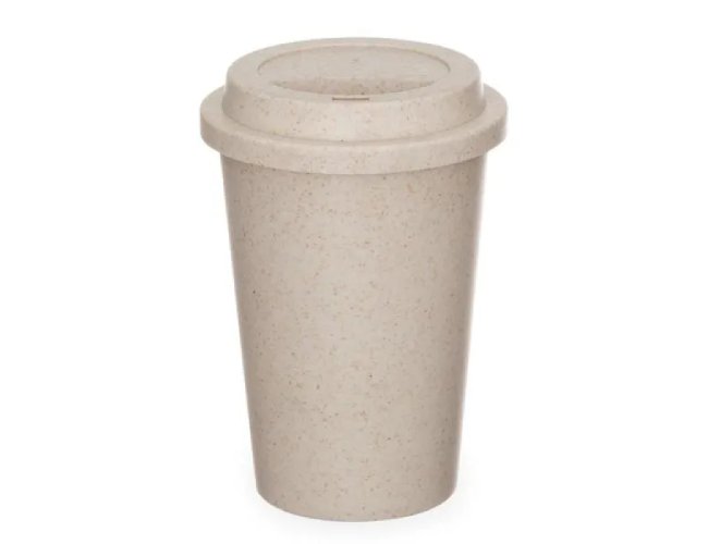 Copo em Fibra de Bambu / PP. Conta com tampa e abertura para beber o líquido. Capacidade: 450 ml