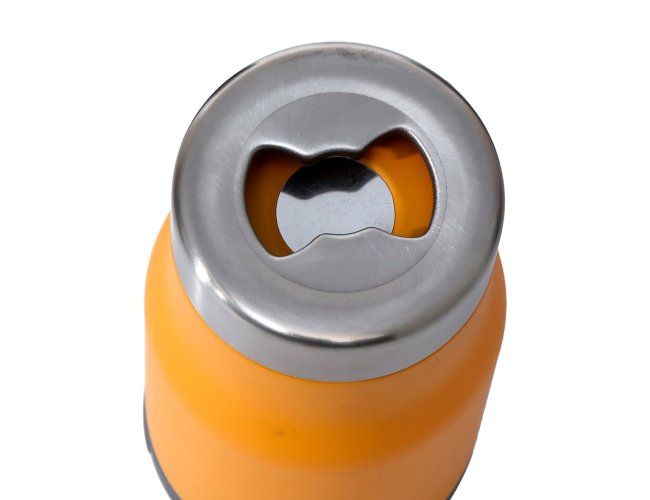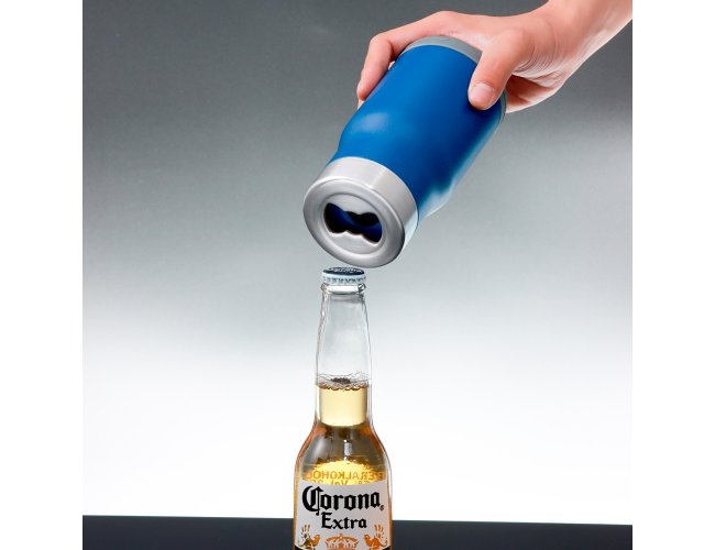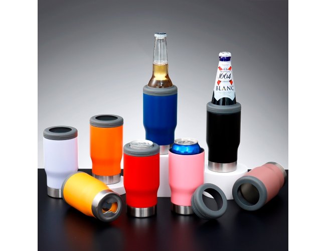 Copo térmico multiuso com parede dupla em inox, capacidade de 380ml. Pode ser utilizado como copo, porta long neck ou porta lata. Contém abridor de garrafa na parte inferior do copo.