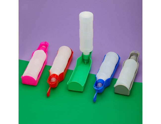 Garrafa bebedouro para pet feita em plástico com capacidade de 420ml. Tampa rosqueável com bico antivazamento, basta pressionar a garrafa para a vazão da água através da tigela. Acompanha gancho de transporte.