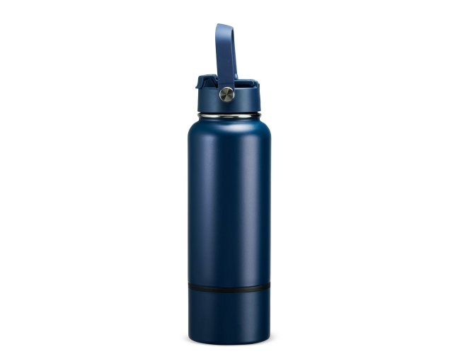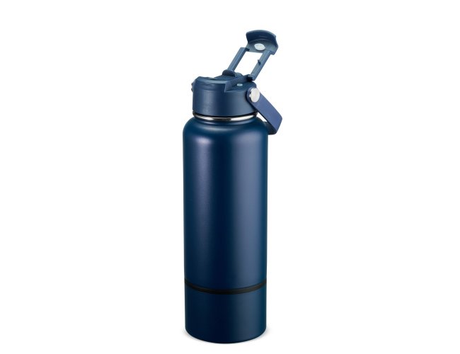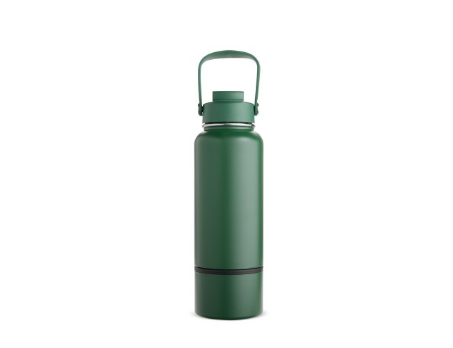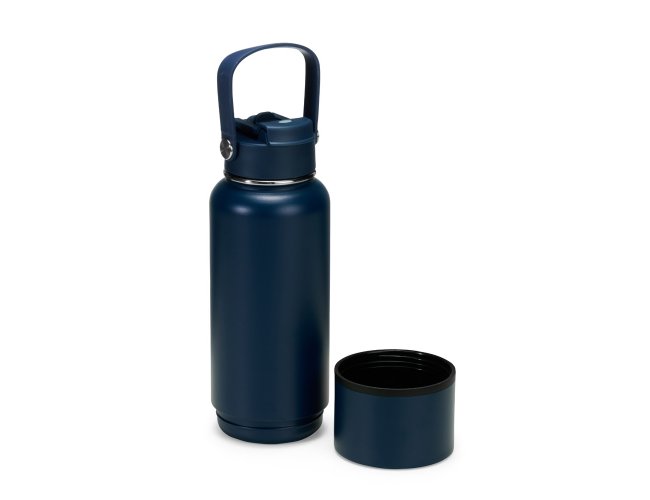 Garrafa térmica em inox com pintura eletrostática e capacidade de até 800ml. Apresenta estrutura interna de parede dupla e vedação a vácuo, o que ajuda a conservar a temperatura de líquidos por mais tempo. Conta ainda com fundo removível. Possui tampa plástica rosqueável com protetor para o bocal, bico flip, canudo interno removível e alça fixa para transporte.