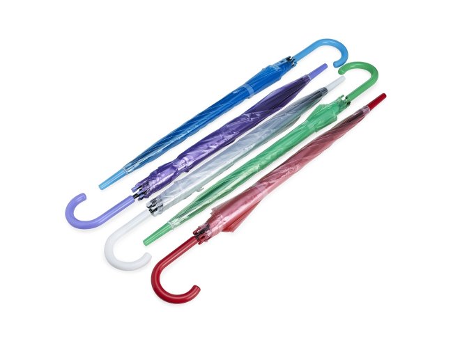 Guarda-chuva plástico com 8 varetas e abertura automática.