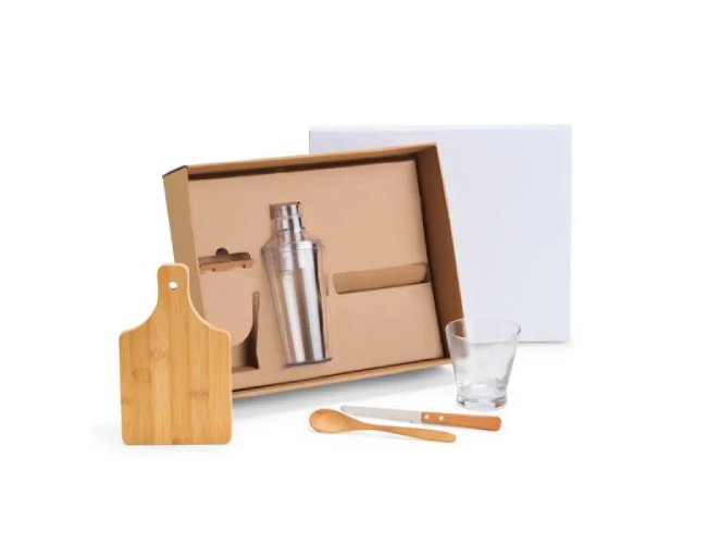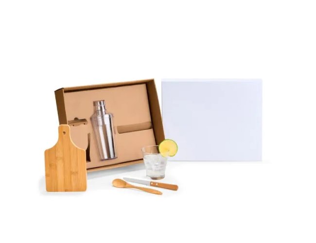 Sugestão de PersonalizaçãoUma gravação a Laser na tábua; Silk na coqueteleira e na tampa da caixa.