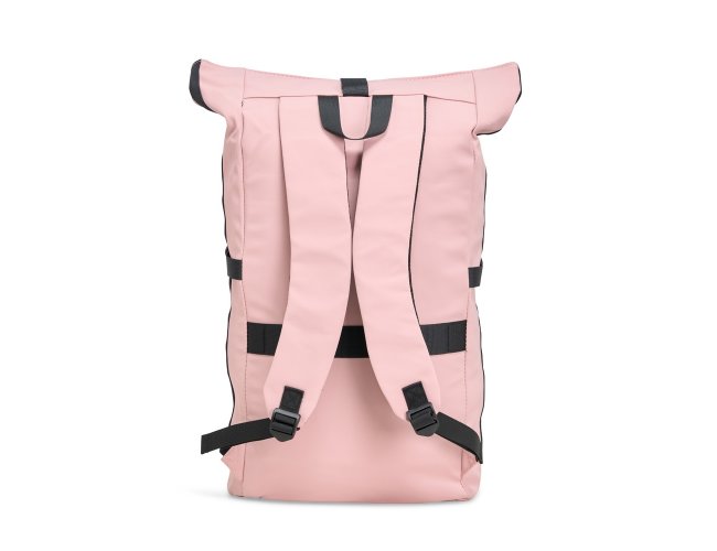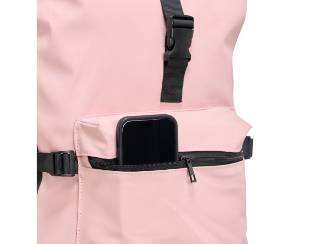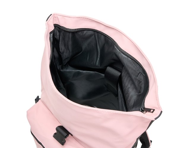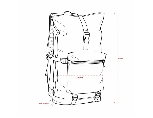 Mochila de couro sintético de 41 litros resistente à água. Possui dois compartimentos, sendo o principal com bolso para notebook de 15,6 polegadas. Possui fechamento por zíper e cinto com velcro, fivelas nas laterais para maior ajuste e engate para mala de viagem.