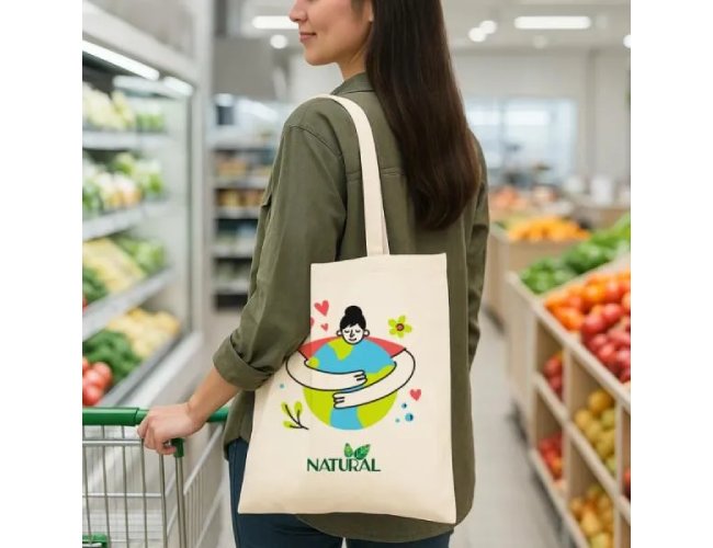 Sacola / ecobag de algodão com alças de 60cm. Gramatura: 210g/m²
