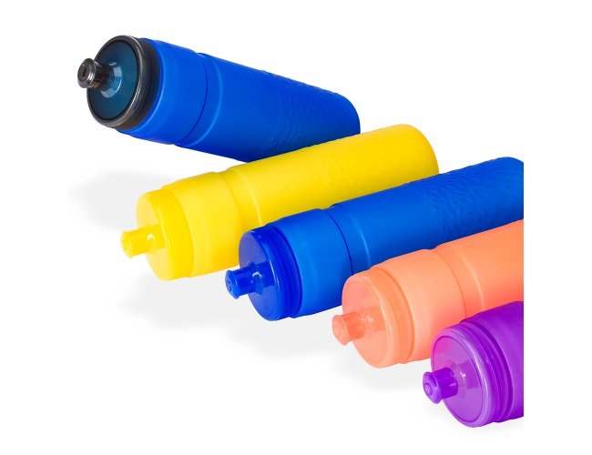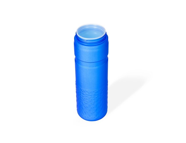 Squeeze feito em PEVA atóxico, com design leve e moderno, e capacidade de 500ml. Apresenta estrutura com parede dupla, que ajuda a manter a temperatura de líquidos estável por mais tempo em comparação a outros modelos de squeezes. Possui ainda com detalhes texturizados na parte inferior e tampa rosqueável com bico de plástico.