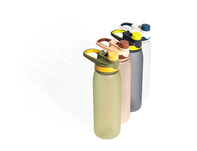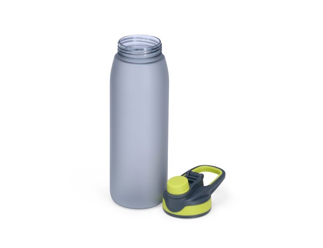 Squeeze plástico com capacidade de 900ml. Possui tampa rosqueável com tampa protetora para bocal e alça para transporte acoplado.
